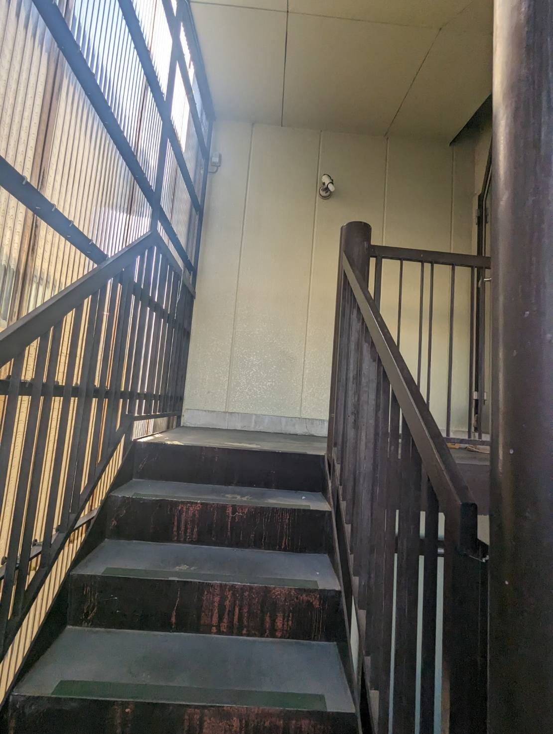階段など鉄部の錆は塗装工事で保護し、経年劣化が見られた廊下床は張り替えています。