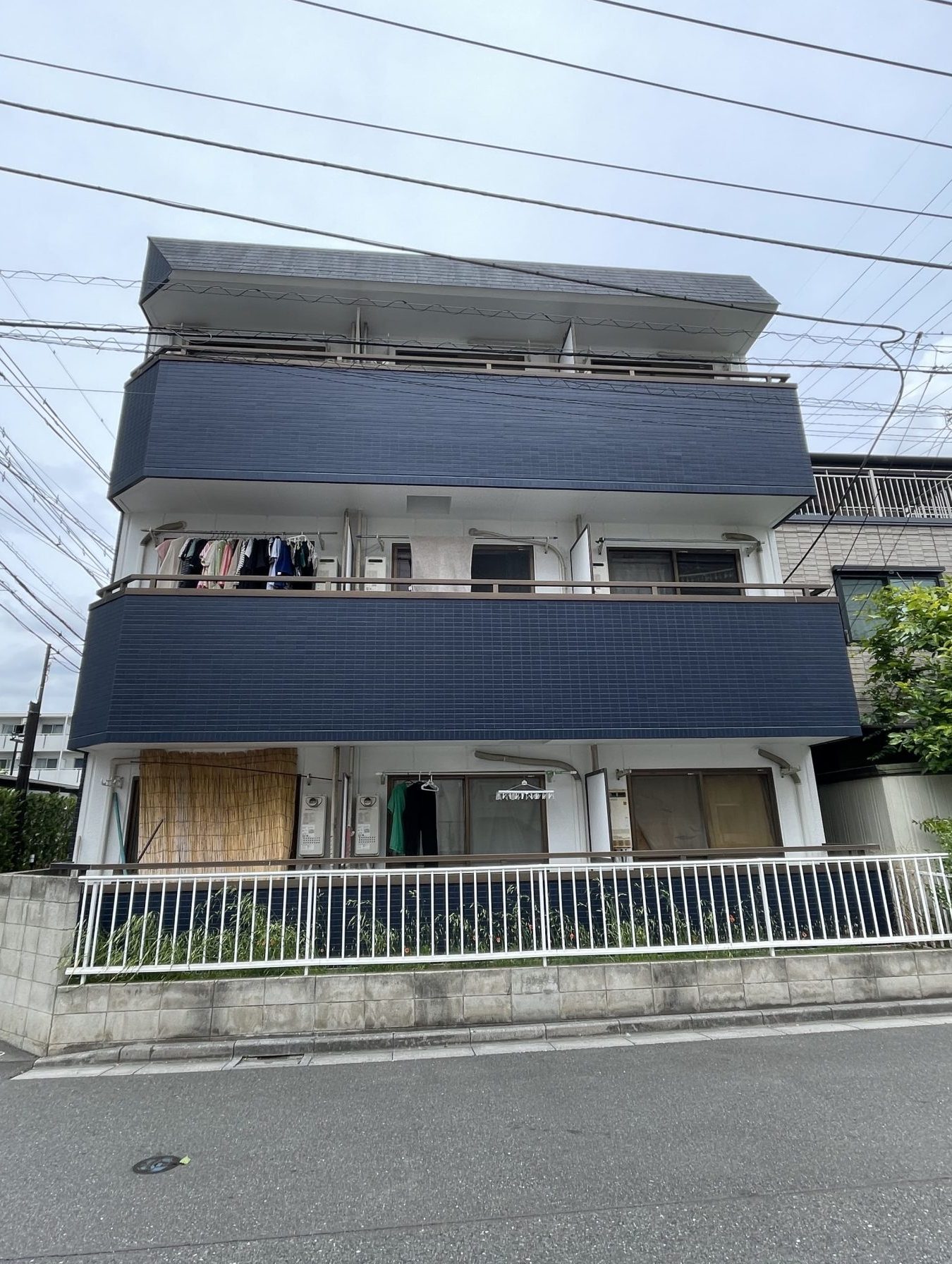 外壁は足場を設置して高圧洗浄を行ったうえで、ネイビーとホワイトの配色によりシックモダンへリニューアルしました。